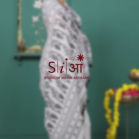 Dhoop Chaav captures the poetic play of sunlight and shade, brought to life in a striking black & white palette on mercerised Cotton.Mercerised Cotton is superior to regular cotton for its enhanced strength, smoother texture, and subtle sheen. The mercerisation process also improves color absorption, ensuring that the saree retains its vibrancy for years while remaining soft, breathable, and comfortable against the skin.Elegant, versatile, and full of heritage charm, Dhoop Chaav is perfect for cultural gatherings, festive occasions, or any day you want to drape the beauty of contrast